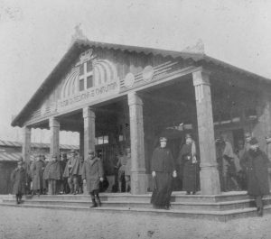 Da settembre 1915 e fino a Caporetto, la “cabina di regia” del minuscolo esercito delle infermiere volontarie della Croce rossa trovò sede a San Giorgio di Nogaro, nella villa di proprietà dell’ammiraglio Ciro Canciani: un’antica abitazione nobiliare di origini seicentesche (ora diventata centro culturale e sede della Biblioteca Comunale), che prenderà il nome dalla moglie dello stesso ammiraglio Dora Celotti. Villa Canciani fu dunque la residenza temporanea scelta da Elena d’Aosta, dall’aprile 1915 ispettrice nazionale del Corpo delle infermiere volontarie, per stare il più possibile vicino alle “sue” crocerossine, durante la loro prima vera esperienza sul campo. La scelta di risiedere nel più importante centro sanitario militare della Bassa Friulana le permise anche di essere accanto al marito Emanuele Filiberto, che risiedeva stabilmente a distanza di pochi chilometri, nella cittadina di Cervignano da poco conquistata, e precisamente nella villa Antonelli, accanto a villa Bresciani dove era stato posto il Comando della III Armata. In questa straordinaria e complessa missione, la duchessa fu fedelmente accompagnata da due donne di forte tempra e capacità: Emilia Anselmi Malatesta e Anna Torrigiani nata Fry. In particolare, Emilia Malatesta, dal 1915 segretaria della duchessa d’Aosta, fu l’anima dell’Ispettorato nazionale riuscendo a gestire con successo il movimento di migliaia d’infermiere tra 443 ospedali da campo e 948 ospedali di riserva; la complicata rete comunicativa da lei principalmente gestita ha fatto spesso capo a Villa Dora, e proprio da qui sono partite centinaia di lettere con le quali venivano ordinati gli spostamenti, elargiti supporto morale, sostegno materiale, consigli e talvolta anche rimproveri alle crocerossine disseminate nelle varie strutture di soccorso e cura.